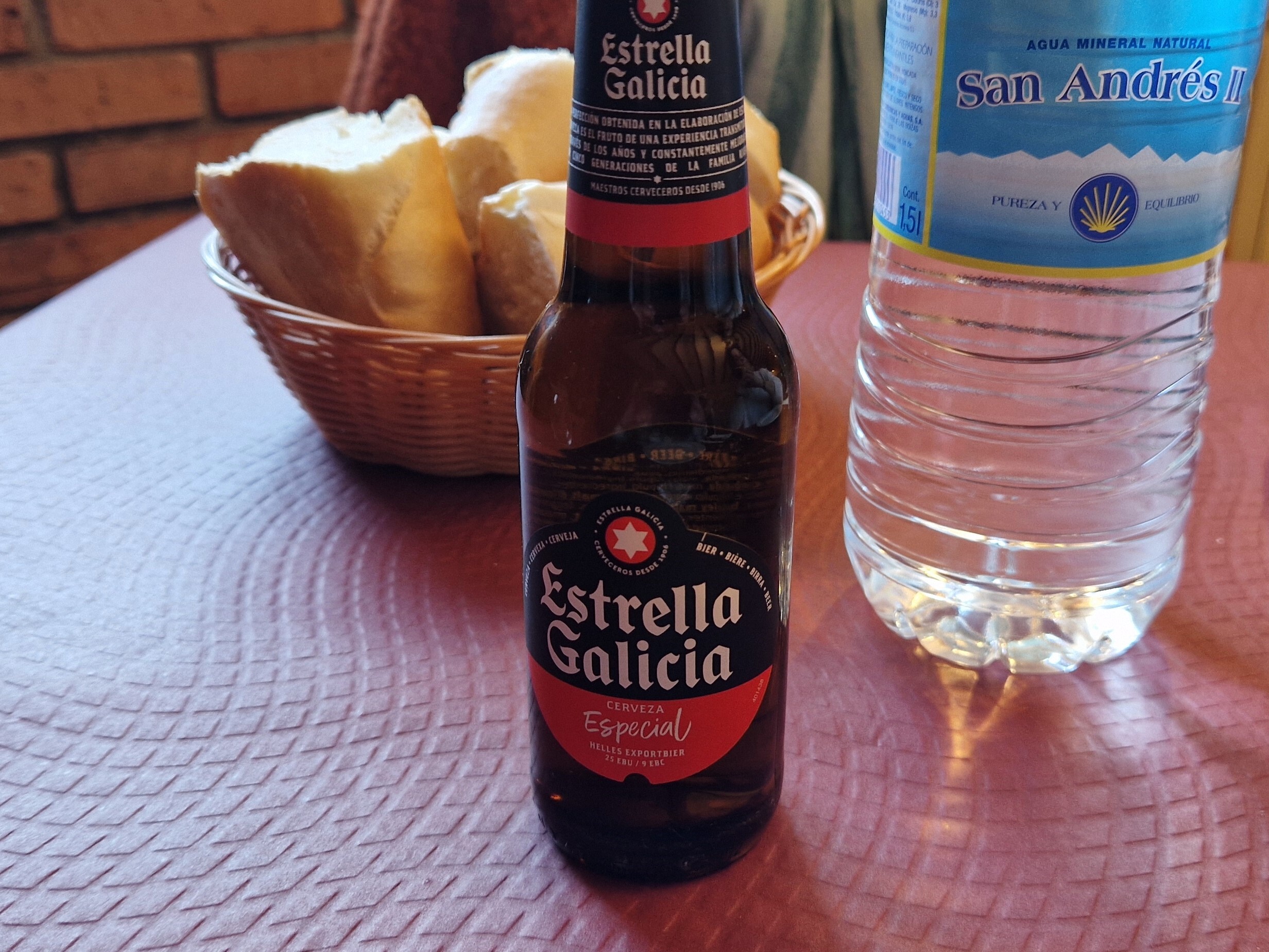 A esa primera hora de la tarde hacía calorcito. Uniendo esa circunstancia al hecho de que había que conducir después de comer, nos animó a pedir agua mineral y una cervecita pequeña.